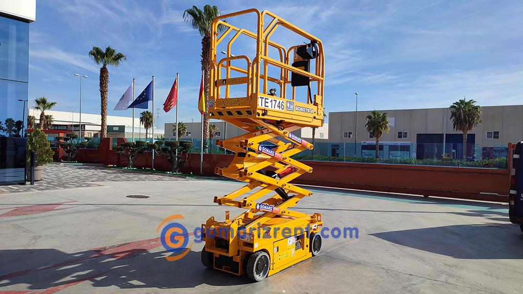 Las Tijeras Eléctricas están diseñadas para trabajar en interior, alcanzan una altura desde los 5m a los 26,5m. Se caracterizan por llevas ruedas anti-huellas y plataforma extensible, lo que permite ampliar la zona de trabajo.